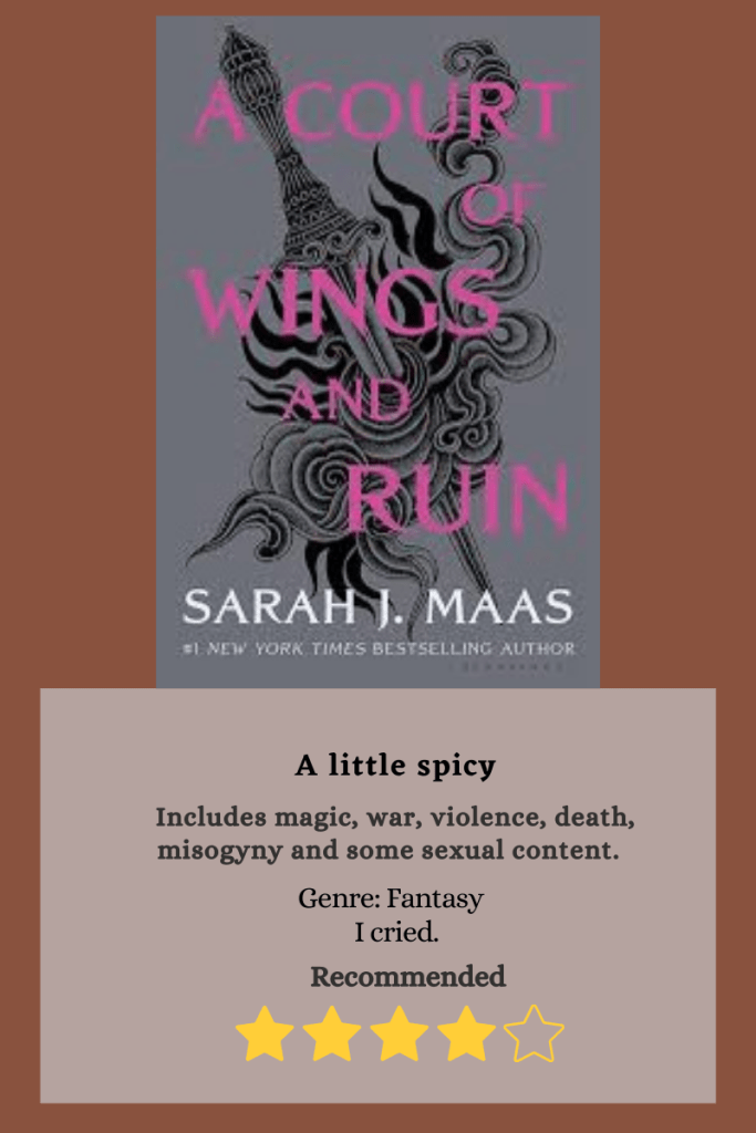 I give it a 4 out of 5 stars. It is my favorite book of the series so far, and to be honest I think it’s because it’s less centered around Feyre, lol. I’m excited to see what happens next and I’m hoping to get more Nesta and Cassian.