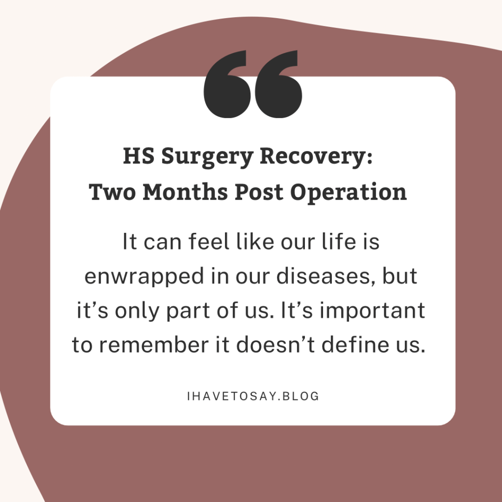The 21st marked two months since I had surgery for Hidradenitis supprativa. It’s been hard.