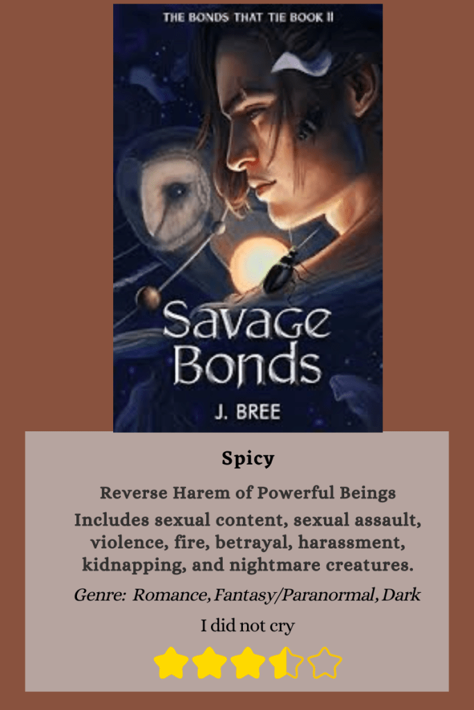 This book also feels like more setup. We see Oli’s dynamics change with each of her bonds, see how her bonds are like with each other, are given a rundown of each of her bond’s powers, and see the aftermath of the reveal of Oli’s power.