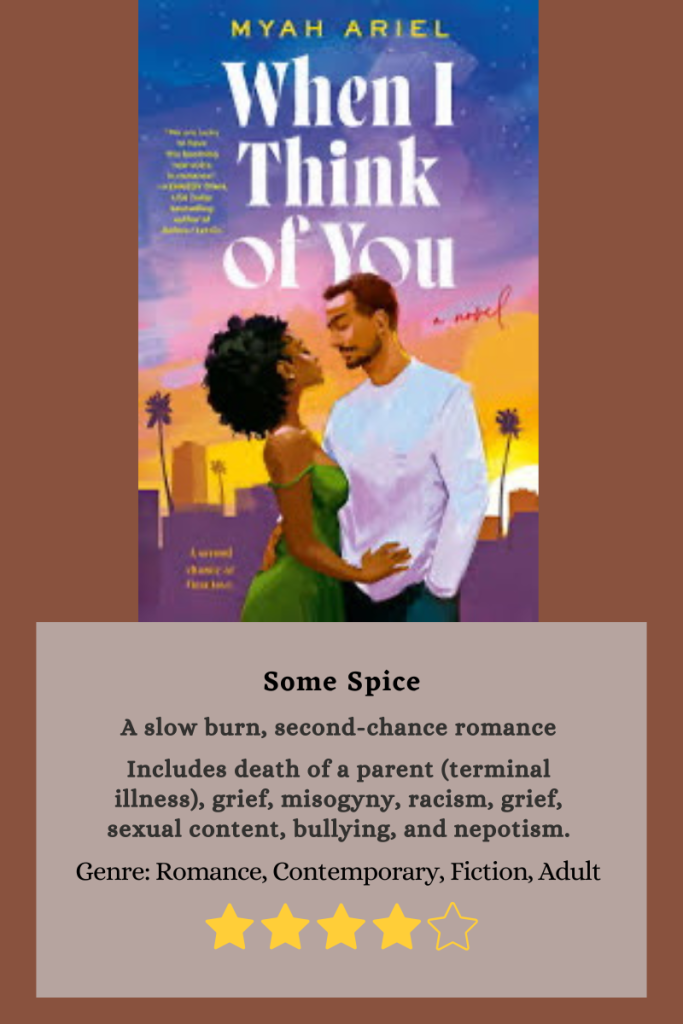 I would honestly say this book is primarily about the movie and Kaliya’s journey and secondarily about the romance, even though it’s a romance book. Danny is in a relationship when they reconnect. The romance aspect between the two leads is a slow burn, and it takes over half the story for them to acknowledge to each other the possibility that more is still there and talk about what happened between them.