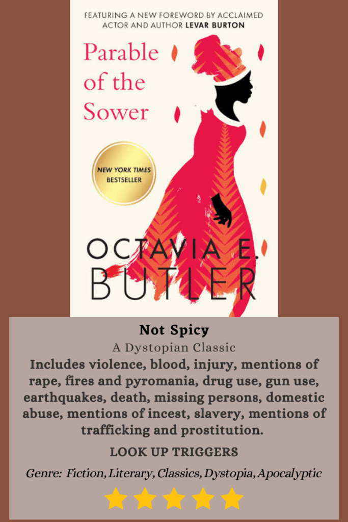 It’s interesting reading how Octavia Butler used real world ideologies to create an apocalyptic world. At the highest level, this book is about surviving, regardless of what it takes, and building community. Being apocalyptic and a story that wants readers to intentionally think about the state of the world and your role in it, the book is heavy. This story, which constantly describes stripping dead bodies of everything on their person, clothes, money, shoes, food, feels even darker because of what’s happening in the US and in the world today.