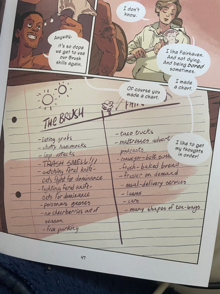 In this world, a bubble surrounds a town to keep out the Brush, which is considered alien wilderness. Life in the bubble is supposed to be safe, while life in the Brush is tumultuous and adventurous, leading to a life of uncertainty. As a kid, human Morgan ditched her outside life to assimilate within.