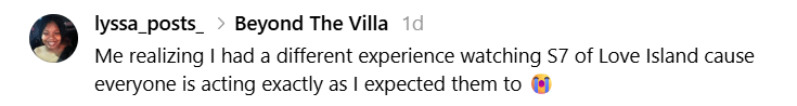 I have a lot of thoughts once again about this Love Island spinoff, but it’s not so much what was shown as much as it is people reacting to what was shown….